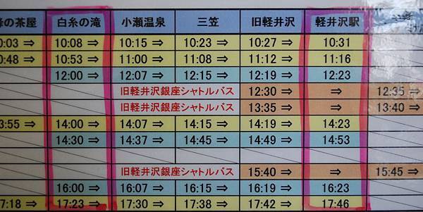 一出車站就看到旅遊中心有公告去白糸瀑布的公車時刻表,